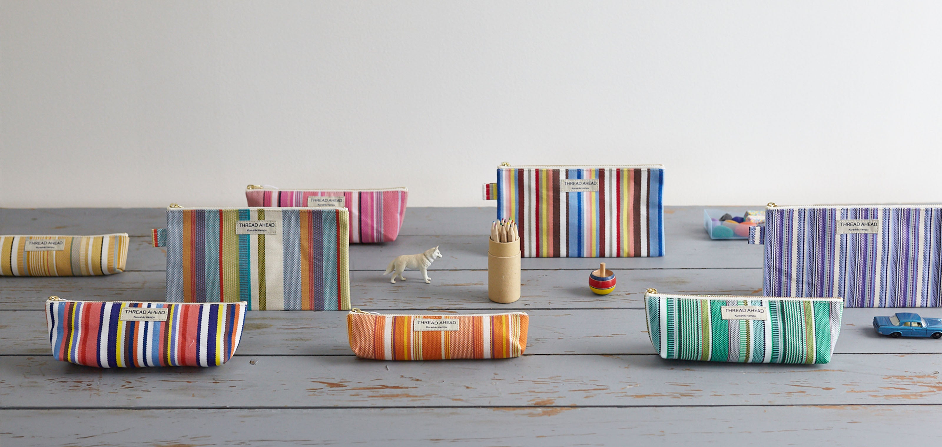 瀬戸内の自然と人が織りなす、一瞬のきらめきを形にした倉敷帆布の新しいカラー帆布シリーズ「SETOUCHI」。この記事では、7つの色が生まれるに至った制作のサイドストーリーをご紹介します。 話し手:武鑓綾香、武鑓悟志(ともに倉敷帆布株式会社)聞き手:中川晃輔、中川美和子/日々木々(編集・デザイン) ――:今回新たにリリースされた「SETOUCHI」シリーズは、7つの色で展開されています。この7色は、どんな経緯で生まれたのでしょうか?悟志:瀬戸内の色を生地にのせたい、というアイデアが出たのは2024年でした。「まずは海かな。瀬戸内の海といえば、こういう色だよね」というふうに、アイデアベースで話しはじめて。カラーチップをさわりながら考えていくうちに、少しずつ具体的な場所と色が紐づいていったような流れです。――:最初に着目したのは。悟志:まずは瀬戸田のレモンですね。あとは空なのか海なのか、当時は未確定だったんですけど、ブルー系も入れることは決めていました。綾香:色が増えていくなかで、全体のバランスも意識しましたね。やっぱり、複数色並んだときの美しさも大切にしたい。それで、途中でベンガラレッドを増やしたり、当初案にあがっていたストーングレーはなくしたり。 ――:選抜されて、この7色が残った。綾香:そうですね。 綾香:どの色もそうなんですけど、奥行きというか。「この色とも言えるし、こういう色にも見えるよね」っていう複雑さの表現は、何度も検討を重ねました。悟志:日生の牡蠣の色は、もともとはオイスターピンクと呼んでいて。ピンク色が前面に出てくるようなイメージだったんですが、生地に落とし込んでみると色味が薄まってしまったんです。最終的には、オイスターシルバーという名前に変えて。本当に、目で見える色の表現はすごくむずかしいなと感じましたね。――:光の加減によって見え方も変わりますし、とくにライスグリーンのような淡い色は、小さな画面上では伝わりにくいかもしれません。手にとって、ふれてみて、はじめて伝わる味わいがある。悟志:「SETOUCHI」シリーズと向き合うことで、あらためて本物のすばらしさに気づけたような気がします。――:自然や、そこから生まれるもの、「そのもの」の美しさに。悟志:そうですね。今回着想を得た風景や素材は、すべて現地まで行って撮影しています。たとえばダスクネイビーやトワイライトブルーは、それぞれ2〜3時間ほどカメラを構えて、日が暮れていく様子を撮影しました。そんなに長時間、海や空を眺めることってないじゃないですか。そうすると、太陽のオレンジが混ざったり、まちの灯りがつきはじめたり、波の動きがあったり。小さな変化がよくわかるんです。身近にありながら、見落としている自然の魅力がたくさんあるんじゃないかなって。 悟志:オリーブグリーンも、最初は実をイメージしていました。ただ実際は、ライトグリーンから徐々に紫がかっていくので、実が深い緑色になるタイミングってなくて。より印象に残ったのは、葉の色だったんですよね。その葉も、裏表があったり、裏側にはうっすら毛が生えているような感じがしたり。 画面上や頭のなかで「こうだろう」と見立てた色が、実際に行ってみるとそこにないことも多かったです。直接足を運んだことで、気づけることがたくさんありましたね。 綾香:観光パンフレットに載っているような“瀬戸内”のイメージってあるじゃないですか。天気がよく、波も穏やかで、青々とした瀬戸内海が広がっていて…という。そうではなくて、よりわたしたちの身近なところにある瀬戸内の色を表現したかったんです。 ダスクネイビーなんかは、きれいな夜景の雰囲気もありつつ、工業地帯の殺伐とした感じもある。そういう瞬間がリアルだと、個人的には感じていて。何気ない瀬戸内の魅力こそ、今回のシリーズを通して伝えたいですね。 悟志:各地をめぐるなかで、自分たちのものづくりに対する向き合い方にも変化があったように思います。 ――:詳しく聞きたいです。 悟志:ライスグリーンは、備前市で160年以上前からつくられている雄町米の色なんですが、じつは一度栽培が途絶えそうになっているんです。背丈が高く、病虫害にも弱いので、育てるのがとてもむずかしい。それを地元の酒蔵の前当主が復活させて、今に続いているそうです。 日生の牡蠣も、撮影時は市場でほとんど牡蠣を販売していなくて。唯一水揚げ作業をされていた事業者さんに話しかけると、今年は不作であまり出回ってないよ、と。大変な仕事だから、自分たちの代でやめようと思っている、ともおっしゃっていました。 環境の変化によって、1〜3年かけて育てたものが商品にならなくなってしまう。かといって、海水温をコントロールすることはできない。そんななかで、収穫の時期を早めたり遅めたり、いろんな工夫をしながら事業をされている。そういったお話が、同じものづくりをしている立場として、衝撃的で