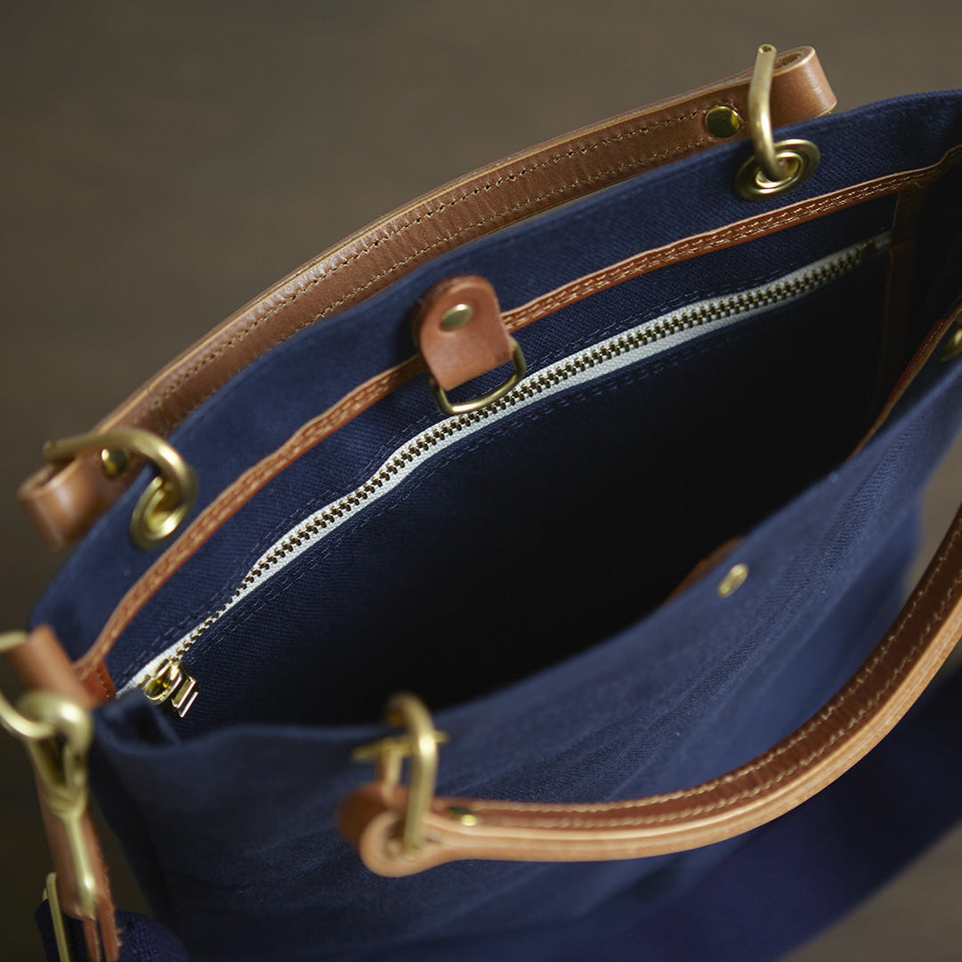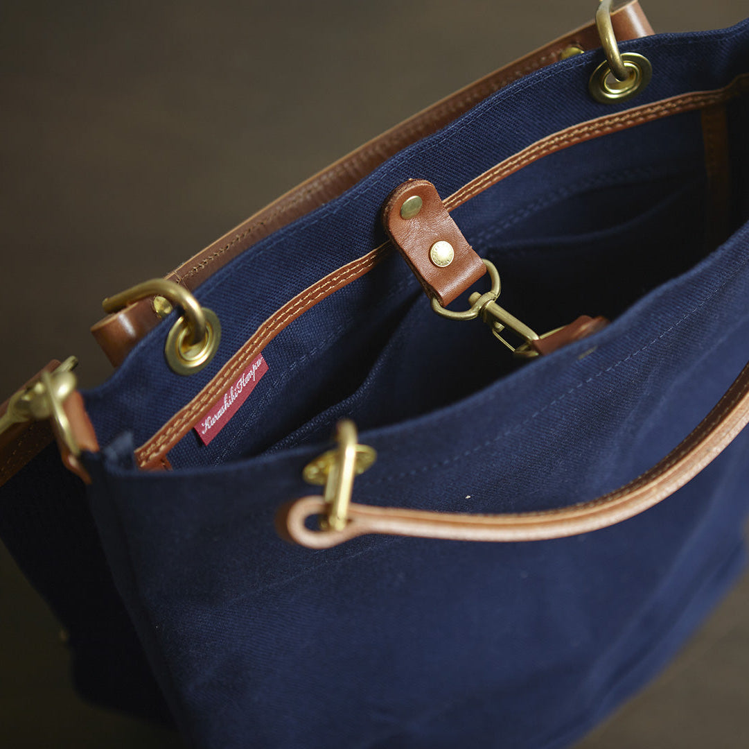 上質な国産帆布に倉敷帆布オリジナルのグロメット(=ハトメ)が光る、大人の雰囲気を纏ったトート。