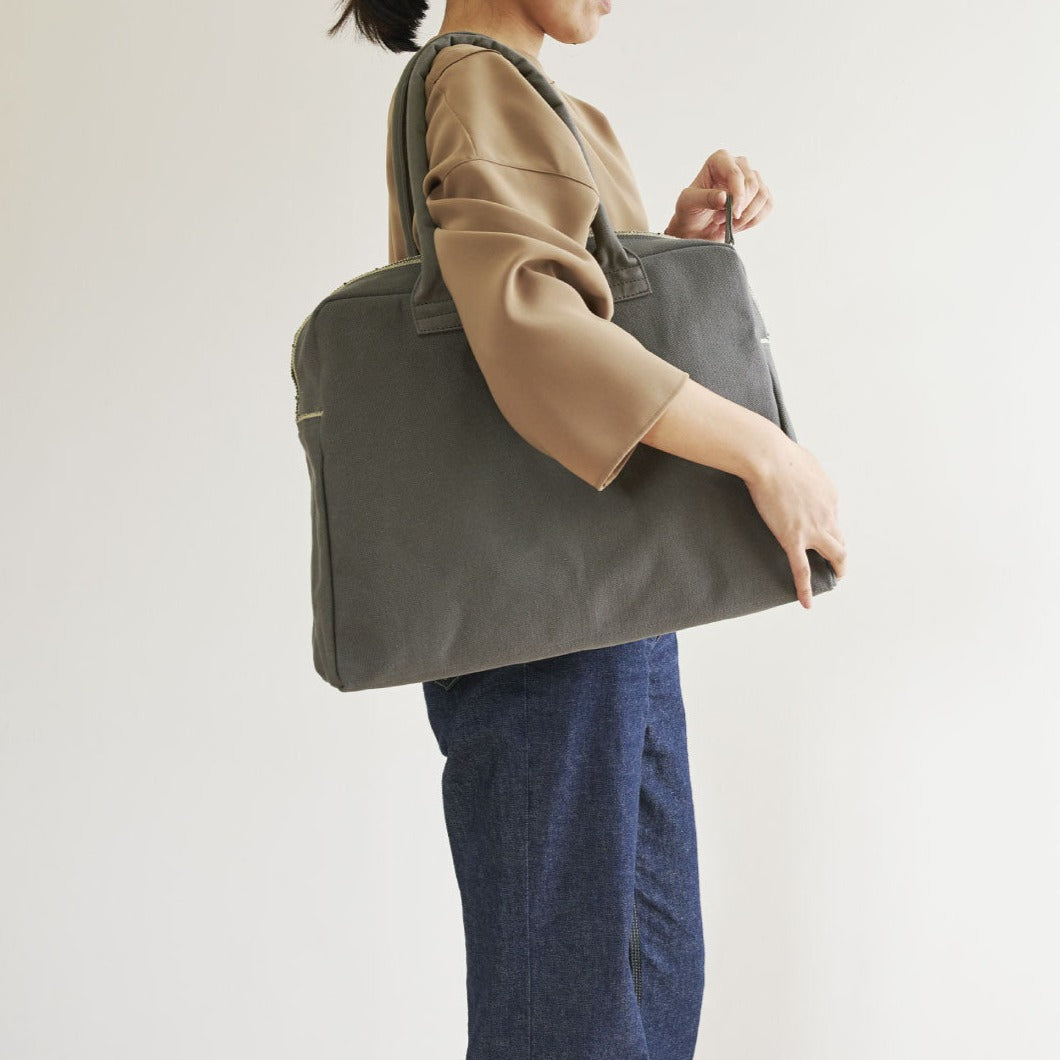 ボディと持ち手はすべて帆布でつくられており、所々にあしらわれたキナリ色のセルヴィッジがアクセントに。