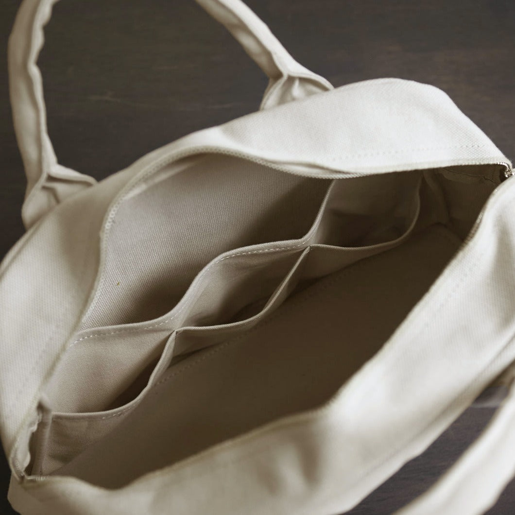 本体部分は厚手4号帆布を、持ち手や内ポケットは薄手の11号帆布を使用。