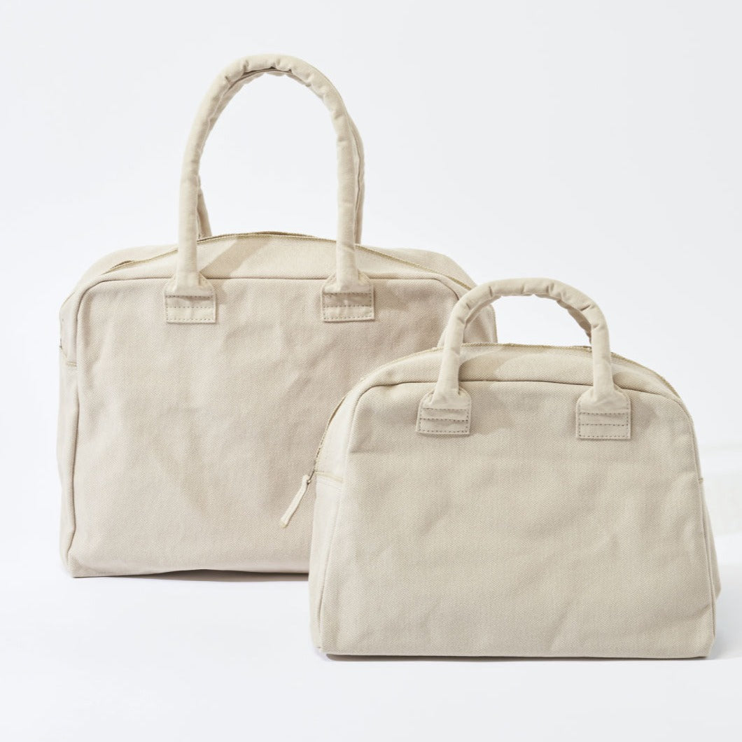ボディと持ち手は全て帆布でつくられており、所々にあしらわれたキナリ色のセルヴィッジがアクセントに。