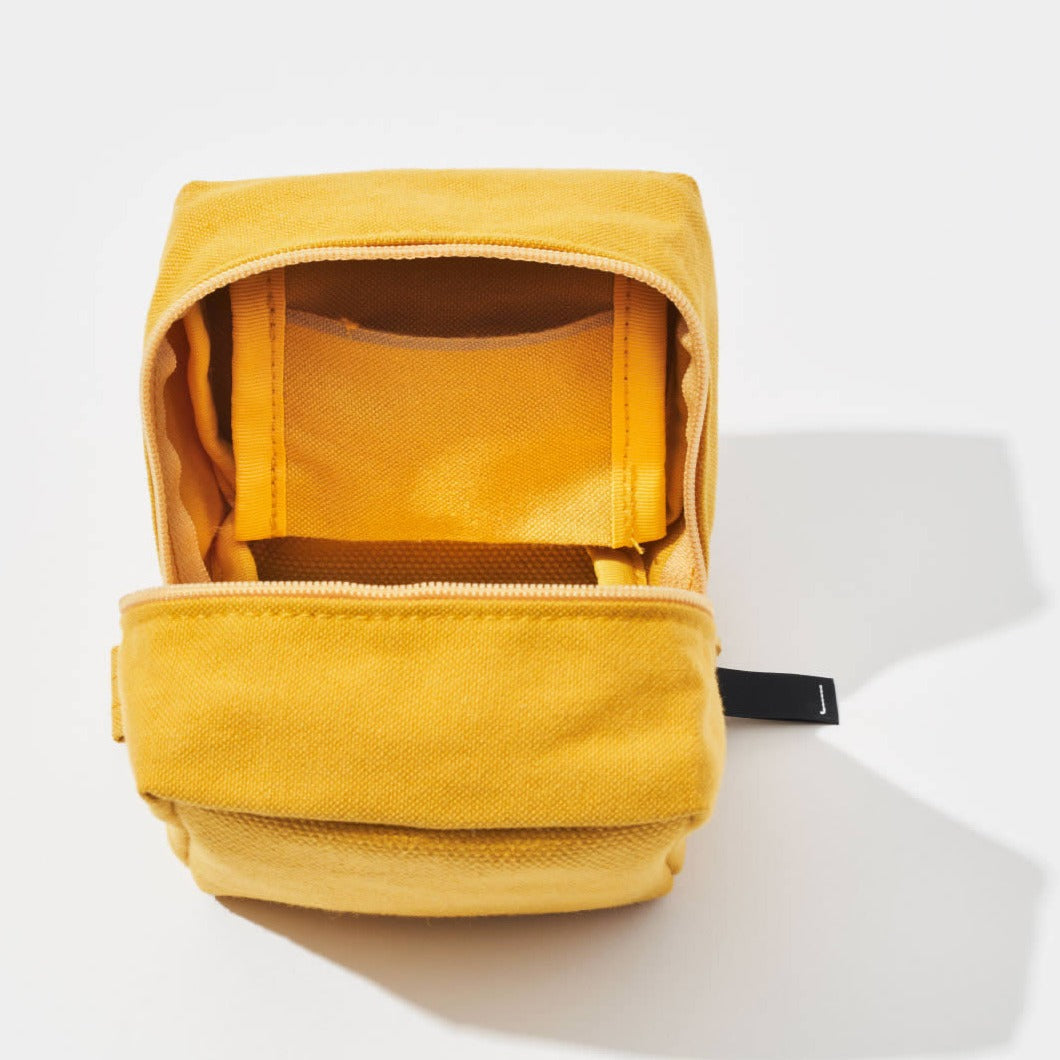 4号帆布と11号帆布を組み合わせて作られた丈夫なポーチ。