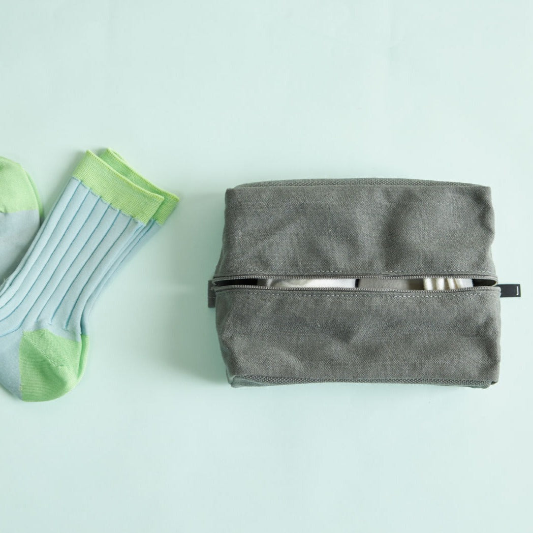 4号帆布と11号帆布を組み合わせて作られた丈夫なポーチ。