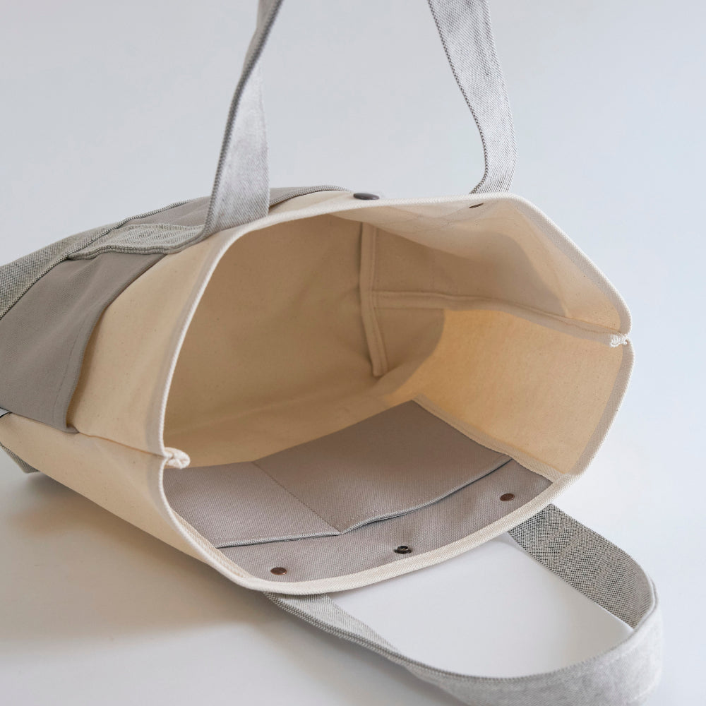 8号帆布を使用。14cmのマチがあり、容量たっぷり。